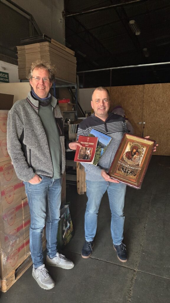 Afgelopen weekend zijn Cor en Jelle met 2 bussen naar Krakau gegaan voor het brengen van goederen. Het aparte aan deze keer is dat ze maar met 1 bus terug zijn gekomen. De Fiat van Cor, met het koosnaampje Mupje gaat door naar de frontlinie in Oekranie. Wij krijgen een andere bus om het werk voor te zetten. We mochten weer heel veel goederen brengen waarmee men heel blij is. Ook bijzonder is dat wij een icoon hebben gekregen vanuit de Orthodoxe kerk waar onze paarskaars naar toe gegaan is. Dit heeft voor ons heel veel waarde. Wij gaan regelen dat deze een mooie plek krijgt in de Kruiskerk